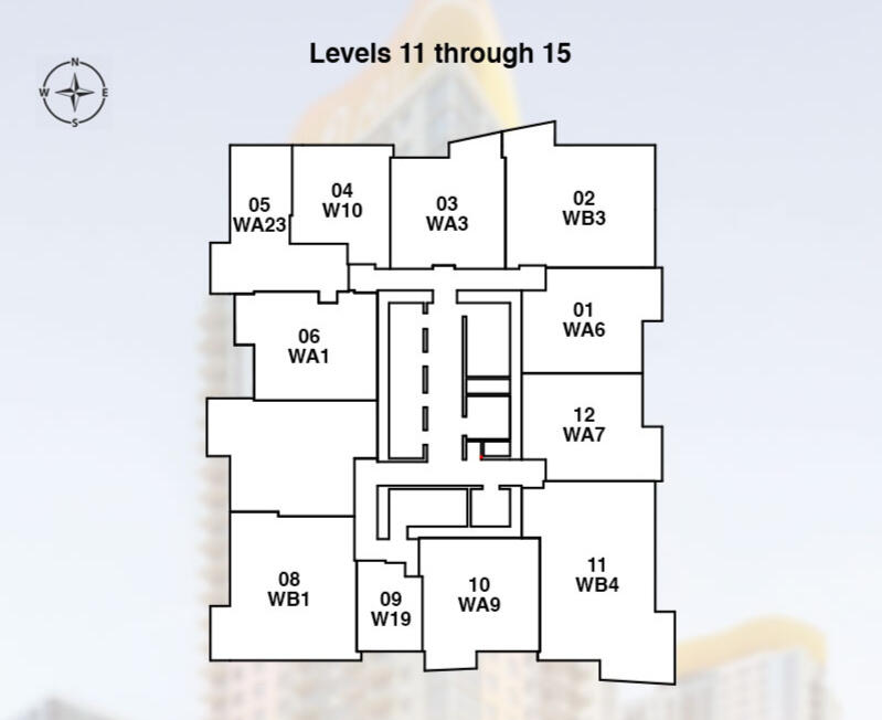 | Unidad W10 Líneas 04/05 | Estudio / 1 Baño (464 SF / 43 M2) |